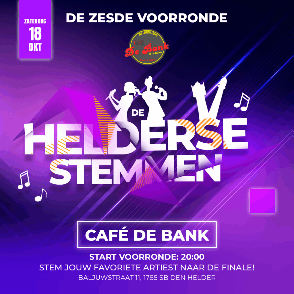 De Helderse Stemmen is hét zangtalenten-evenement van de Noordkop, bedoeld voor beginnende en gevorderde zangers en zangeressen die hun stem willen laten horen én podiumervaring willen opdoen.